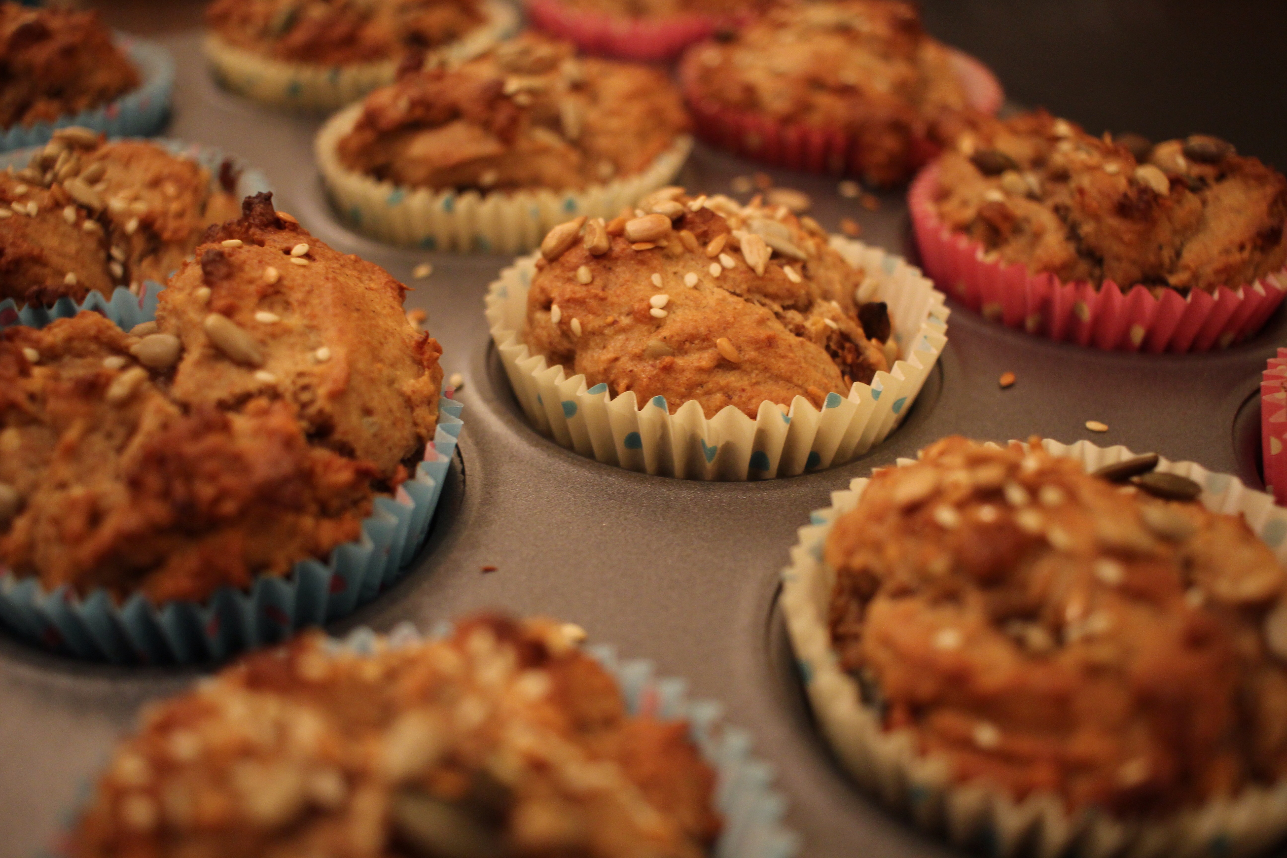 5. Divide the batter between the 12 muffin cases and sprinkle with seeds. Bake for 20 minutes until golden. Leave to cool for 5 minutes before transferring to a wire rack.