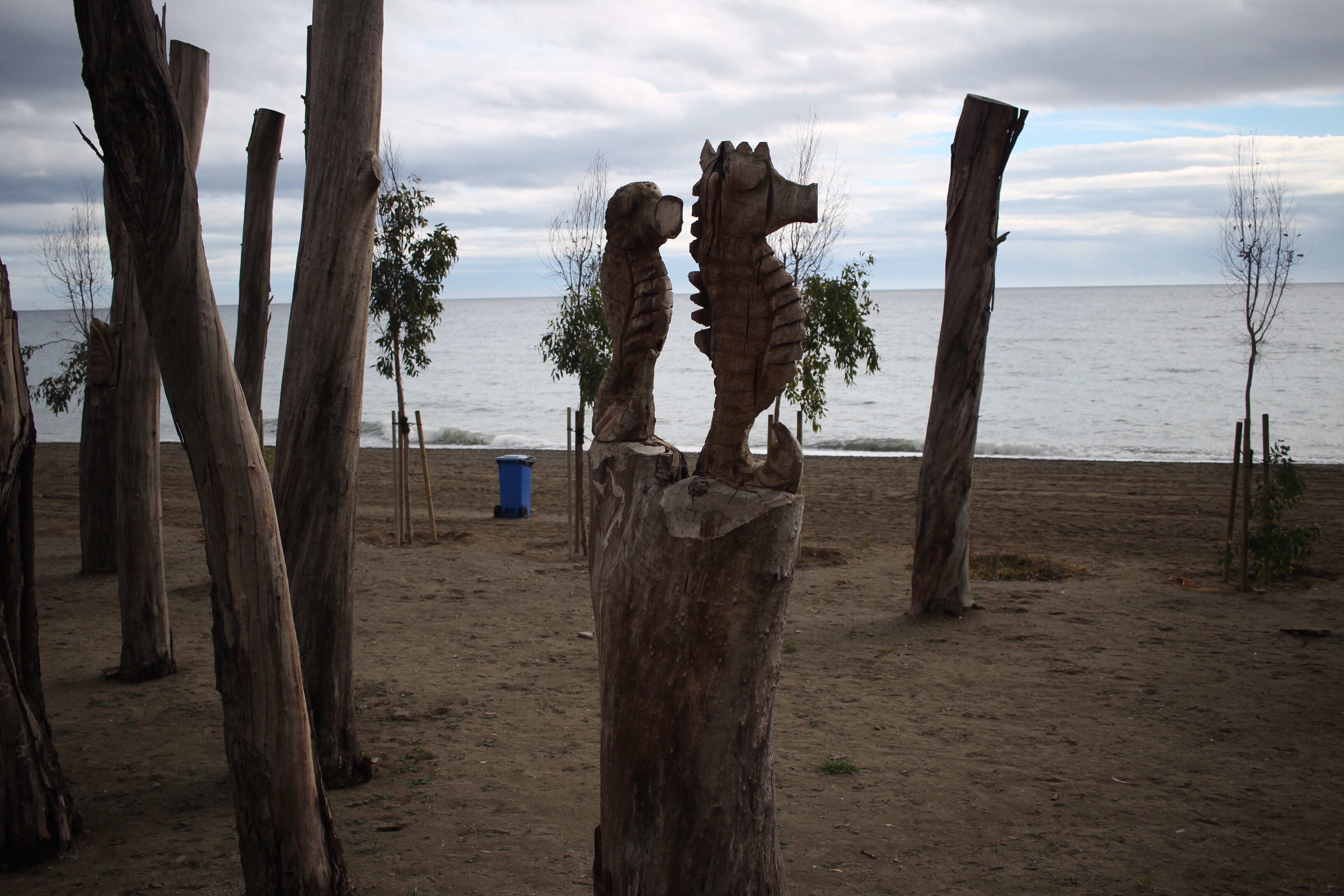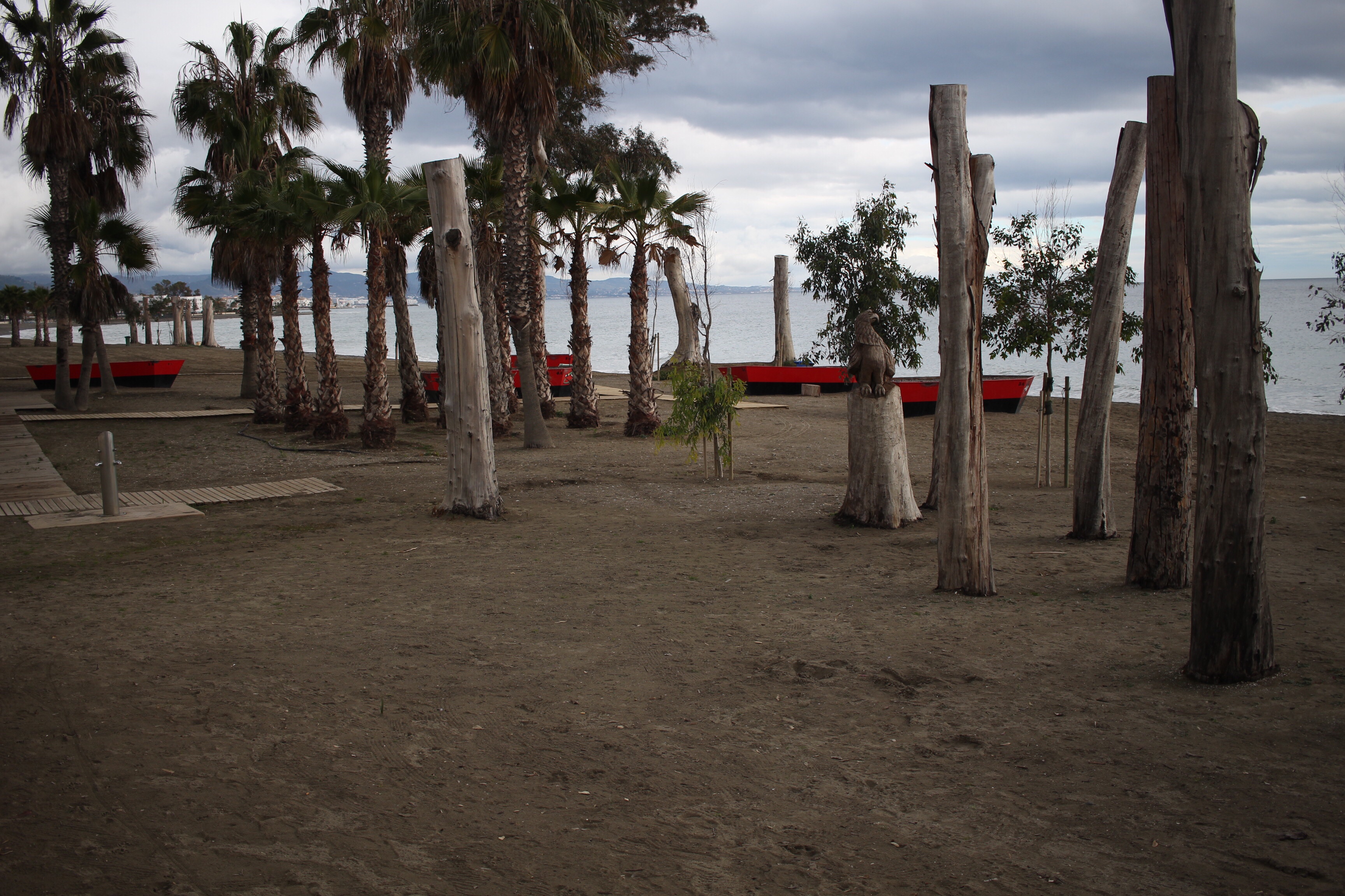 Early afternoon I took a short walk along the beach with my husband. The weather was mild and pleasant and at last it had stopped raining. The concept of rain in Spain is foreign to me but I am getting used to it. My husband’s Spanish home is San Pedro Alcántara, so we took a stroll along the beach front. Last year the place was essentially destroyed by floods but this year it has been repaired and some sculptures have been made from the remains of the trees that took the brunt of nature’s forces.