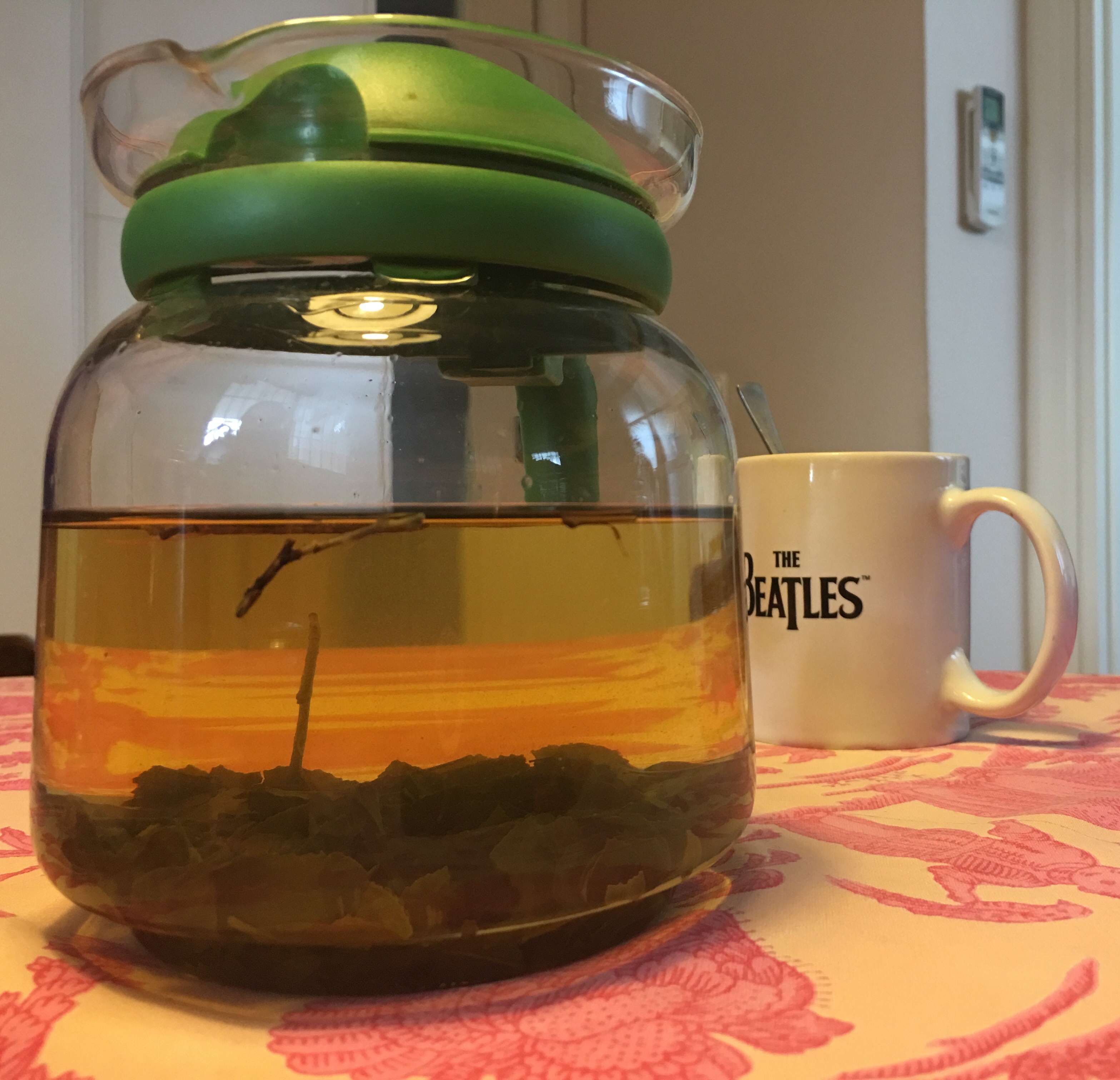 Followed by wholewheat spaghetti with homemade pesto (pistachio and sundried tomatoes). Dessert was a tasty little pot of chocolate (los 2 vacas). Finished with some Japanese green tea that I had bought as a Christmas present for in-laws.