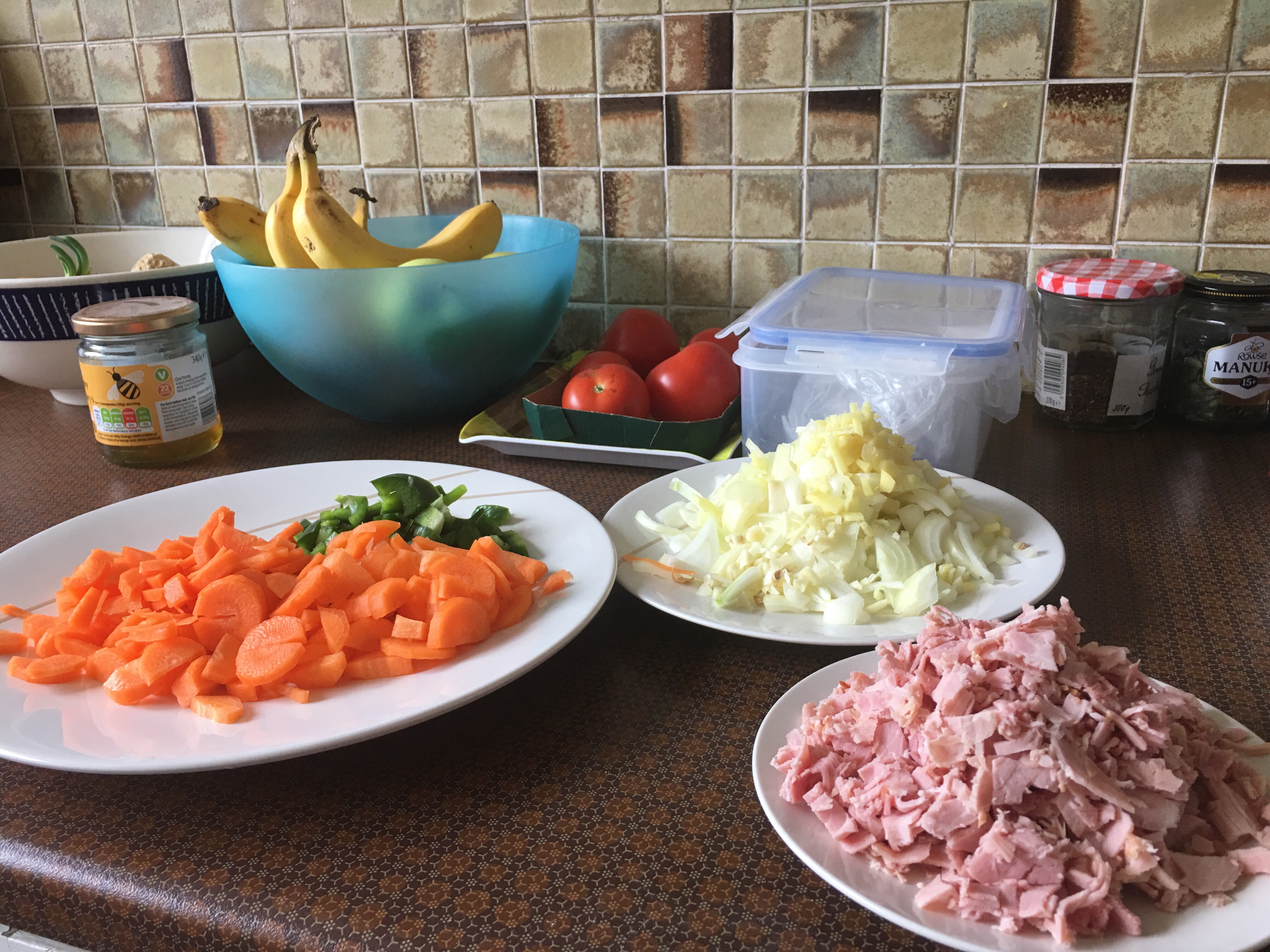 Today I have been married exactly two years. It feels like 20 years! While Nacho was at work I busied myself in the kitchen because I wanted to make a nice meal that we could share in the evening. He is not a huge fan of jollof rice, so I thought that I might try my hand at a fried rice dish. Sisi Jemimah is now my go to person for Nigerian rice dishes. I found two recipes on her website and chose this one: Nigerian fried rice basmati fried rice. It was rather easy to make and as usual an absolute pleasure. I did not have all the ingredients but I made do with what I had in the cupboard.