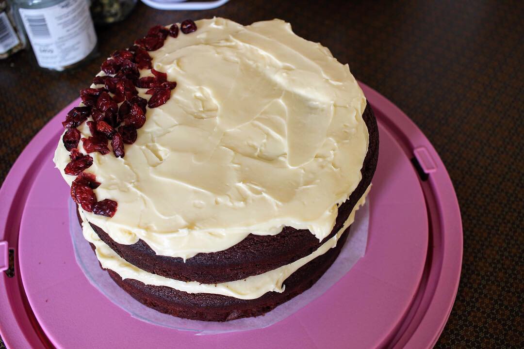 For dessert, I made another red velvet cake, this time I added a little bit of oil to increase the moisture and halved the butter icing recipe.