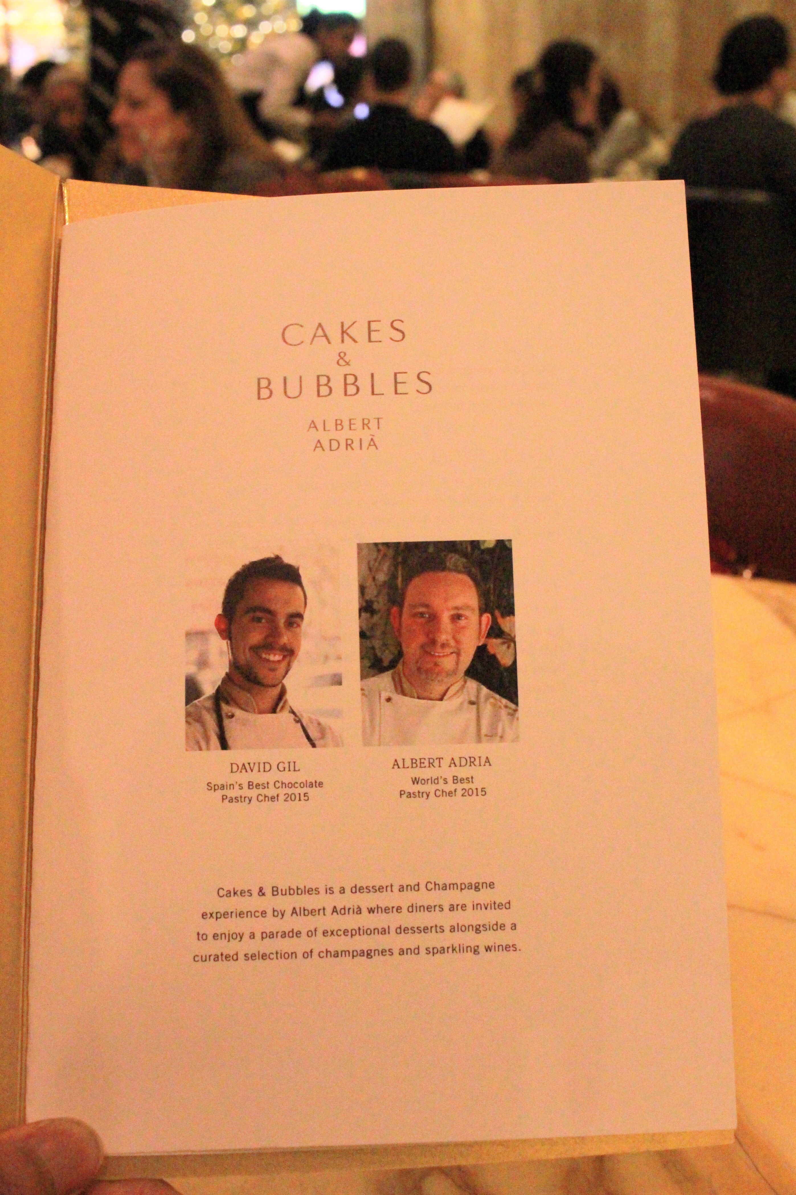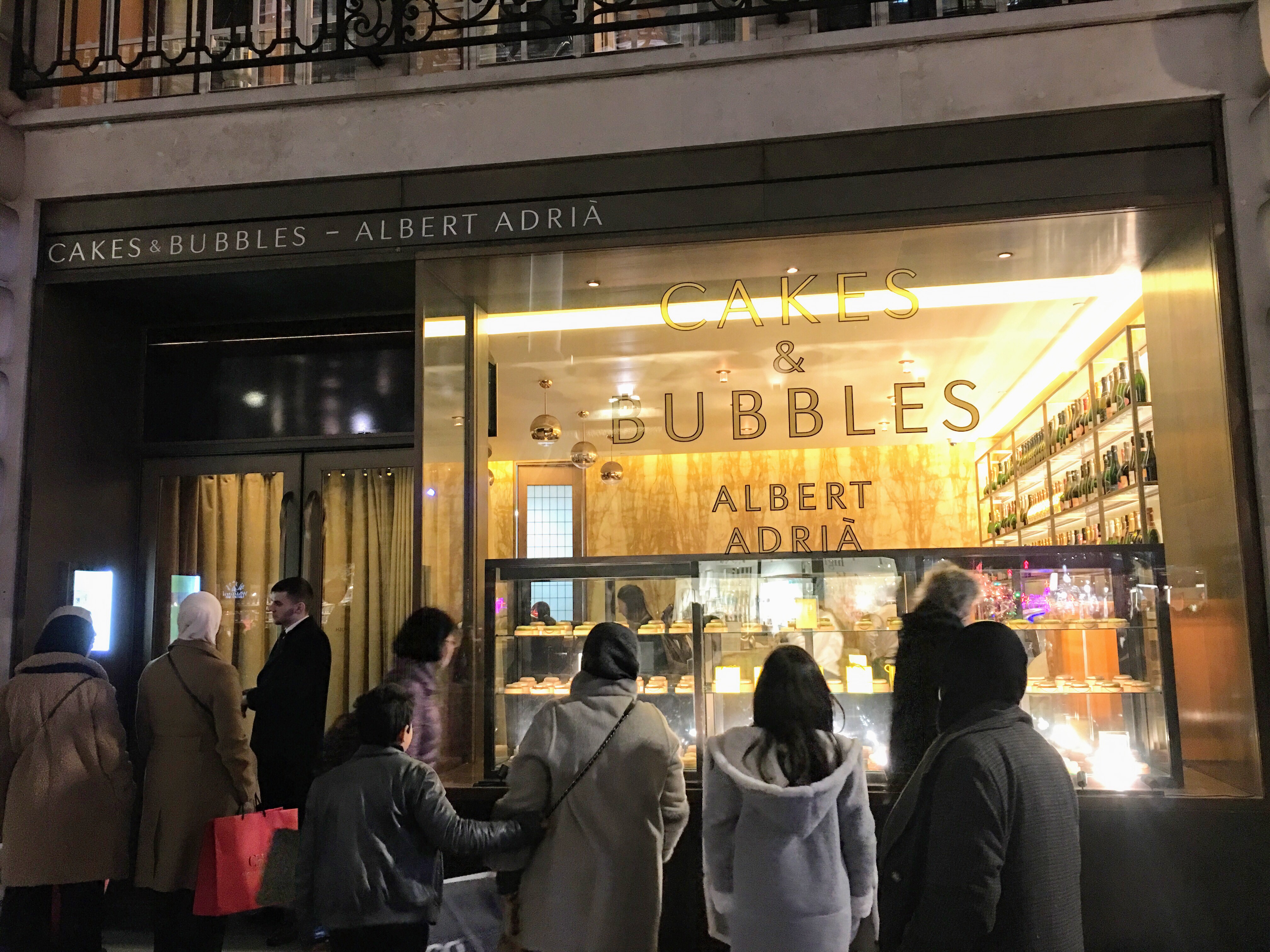 Having spent many winter evenings cosying up on the sofa consuming multiple episodes of Emmy award winning documentary series Chef’s Table on Netflix, it was really a foregone conclusion that Nacho’s birthday treat would involve eating out somewhere unforgettable. It just so happens that one of the chefs featured in Season 5, Albert Adrià, has opened a dessert restaurant in London, Cakes & Bubbles. Albert Adrià is the younger brother to Ferran Adrià who in turn was the savory chef and co-proprietor the groundbreaking avant-garde Spanish restaurant El Bulli. Albert was the pastry chef and creative director where he worked for over two decades. El Bulli is now closed, but was considered one of the world’s best restuarant. It is here that the art of molecular gastronomy was explored by the Adrià brothers.
