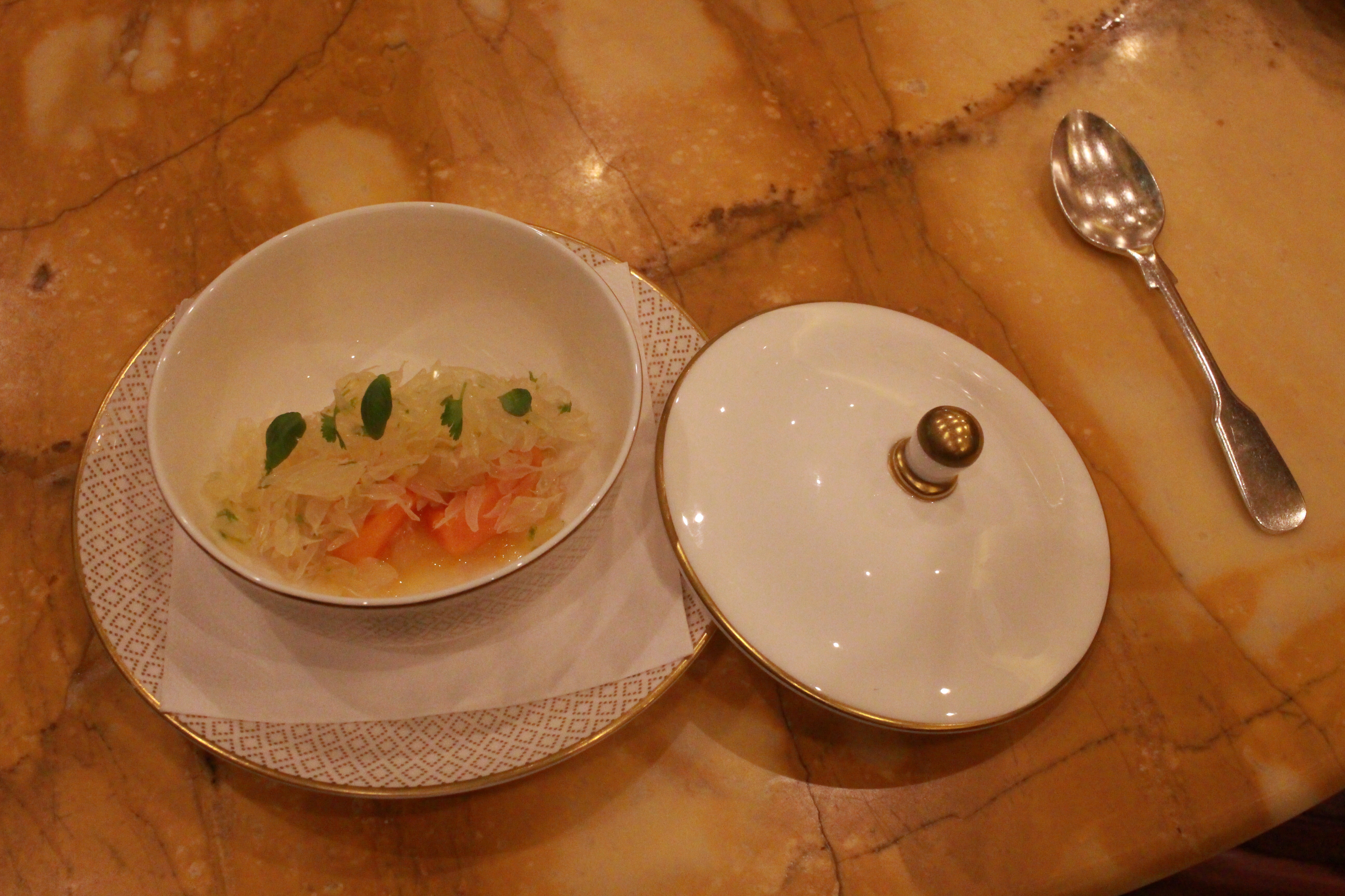 I’d never heard of Pomelo before this day. However I loved this citrusy dessert, tasty and almost served as a palate cleanser before heading to the creamy ‘third and fourth courses’