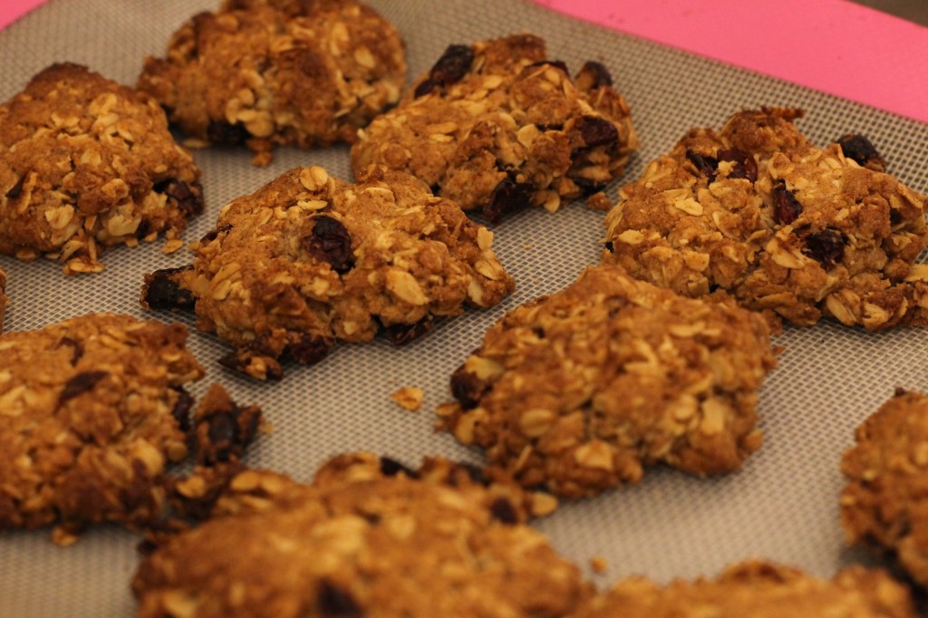 I had a jar of cranberries that I wanted to use up so it was as good a start as any. Despite my multiple recipe books, I will still turn to Google to look for a recipe that I can adapt for my purposes. After a short search, I found a Martha Stewart recipe that seemed to fit the bill. I had to make a number of adaptations based on the contents of my cupboards. I used wholemeal self-raising flour instead of all purpose flour, baking soda and baking powder. I do not have two types of sugar so I used 1 1/2 cups of golden caster sugar. Crucially, I did not have any eggs, so I used two tablespoons of chia seeds as a substitute to mix with the milk (in my case almond milk). I recently read in a vegan text book that chia seeds could be used as an egg substitute. I made a lovely gloopy mixture which seemed to work well. I decided from the outset that I was only going to make 12 cookies and freeze the remainder of the cookie dough mixture for another day.