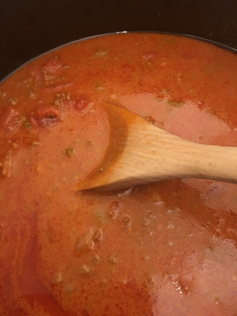As well as my craving for that rhubarb cake, I also felt the need to make and eat a Bolognese sauce. I found a recipe online that I thought I’d copy as it seemed simple and I was attracted to the idea of adding milk to the recipe.