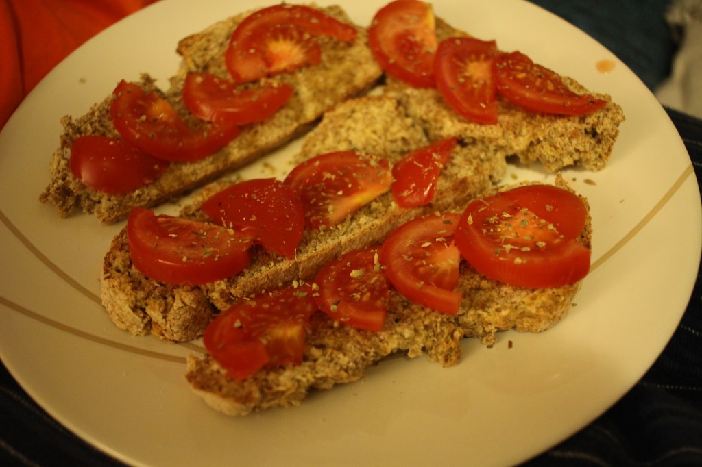 Nacho added olive oil, tomatoes and oregano to make a delicious savoury snack.