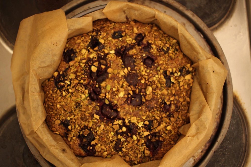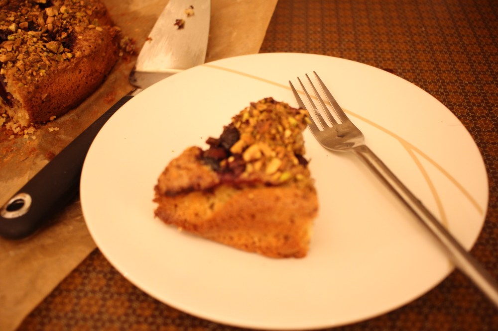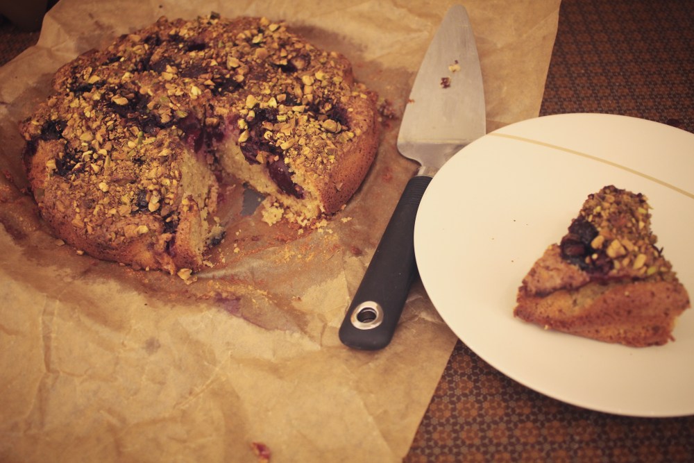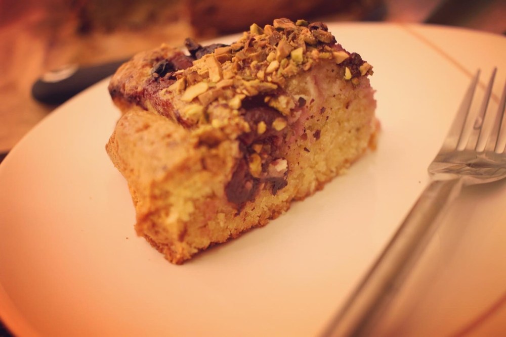 Since the moment that it appeared on my Instagram feed, I have been dreaming about how I was going to make the cherry, pistachio, almond and coconut cake from Honey & Co.