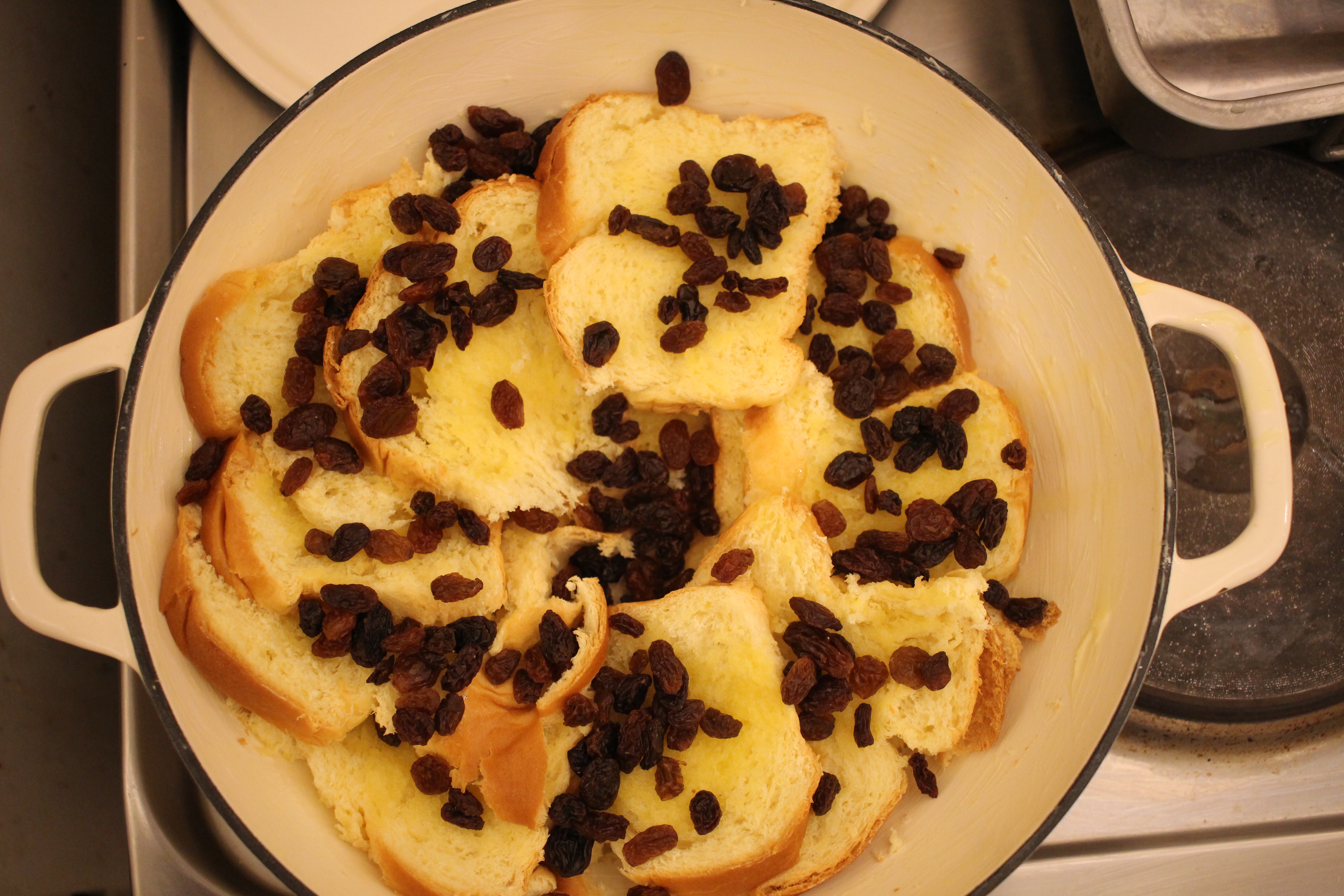 100g (4oz) sulta100g (4oz) sultanas3 tbsp demerara sugarFor the custard:3 eggs75g (3oz) caster sugar150ml (5fl oz) double cream600ml (1 pint) full-fat milk1 tsp vanilla extract1 small lemon finely grated zest