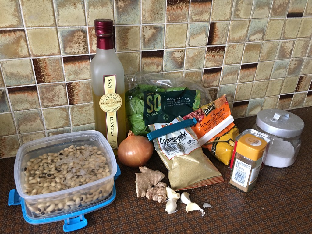 My sister shared this recipe (Black-eyed pea masala with kale)with me and our other sister and it has been on the cards for a few days now. Canned black-eye peas are not a thing for me, so I soaked one cup of black-eye beans for 2 days.
