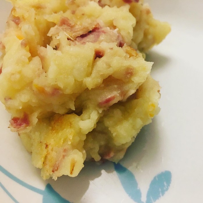 I also wanted to use up the turkey trimmings so I thought it would go nicely in a bubbleandsqueak-esque combination. I made up some mashed potatoes, mixed with the trimmings and fried up the whole lot.