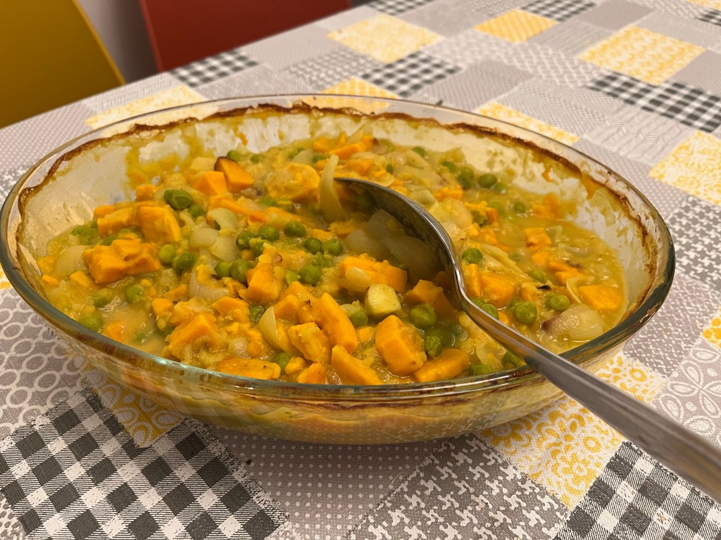 It is another easy dish to cobble together but I struggled with the cooking times. After thirty minutes, the sweet potato still was not cooked through , so I had the put the mixture back into the oven for another half hour. Then it came out cooked and very mushy. It was however, very very tasty. It’s sweet, coconutty and creamy.