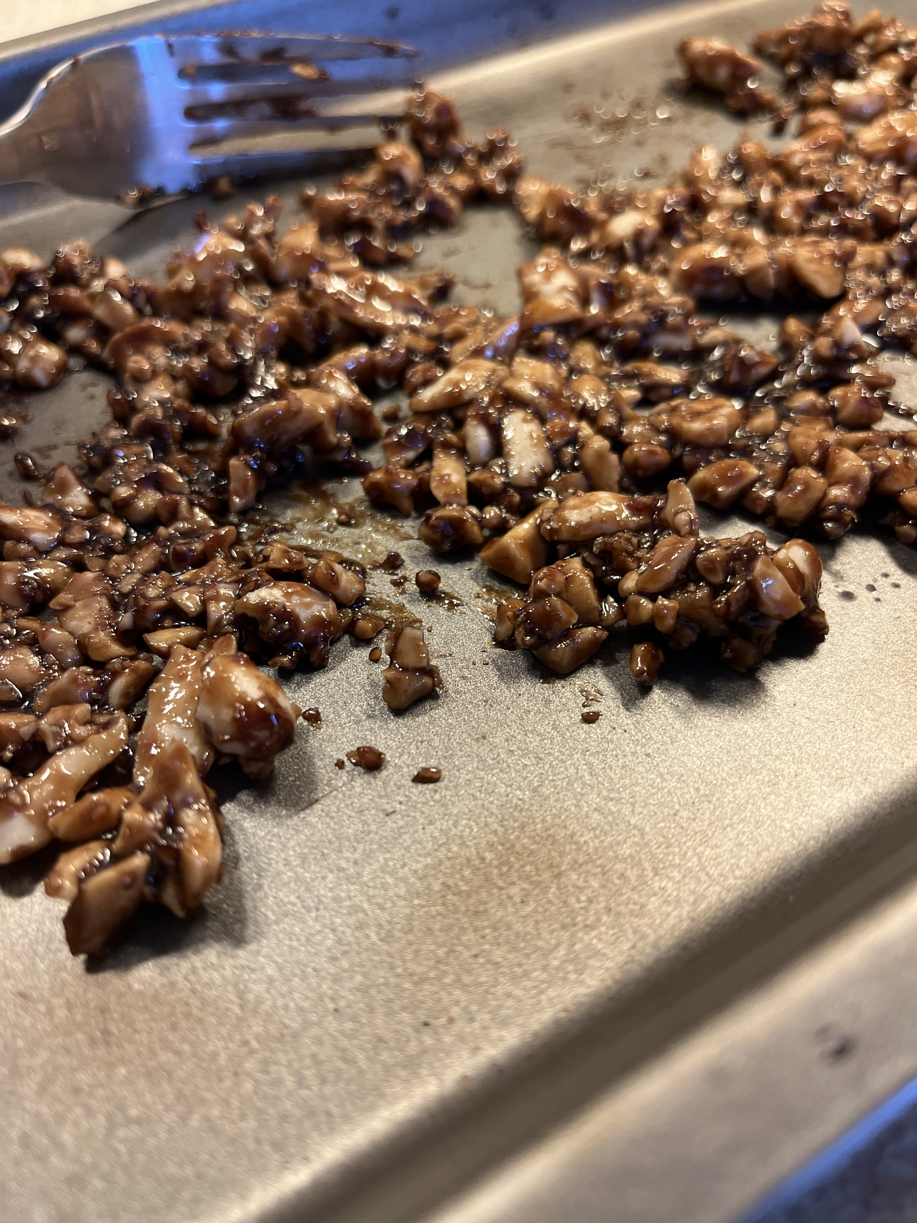 Easy to make, basically three stages – make the peanut topping, making the dressing, make the salad and combine.