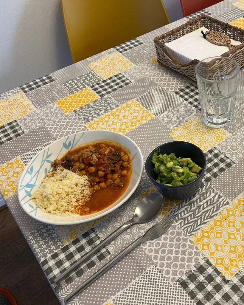 I served with a salad made of lettuce 🥬, cucumber 🥒 and avocado 🥑 with a simple lemon 🍋 juice and olive oil ‘dressing’ and cous cous.