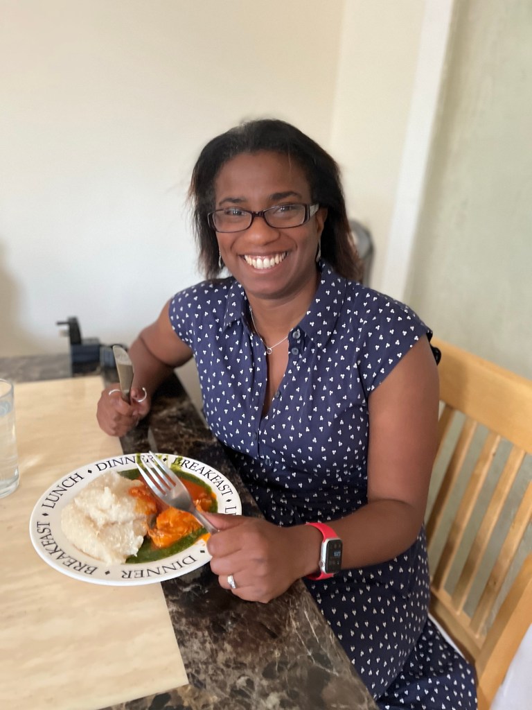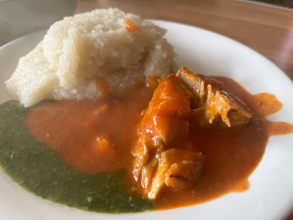 Anyway Mummy made a delicious meal that both enjoyed. Ẹ̀bà with fish soup and spinach and okra.