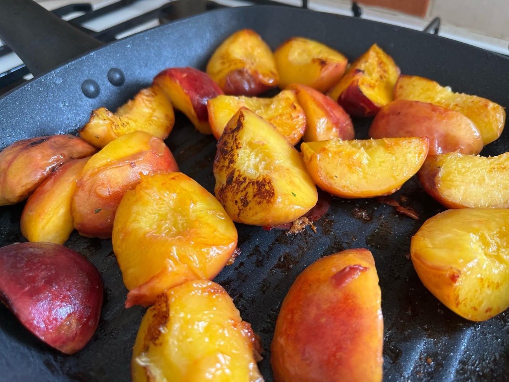 I might have overdone it with the ‘drizzle with olive oil’ part because at one point I thought “I’m actually frying these peaches!”.