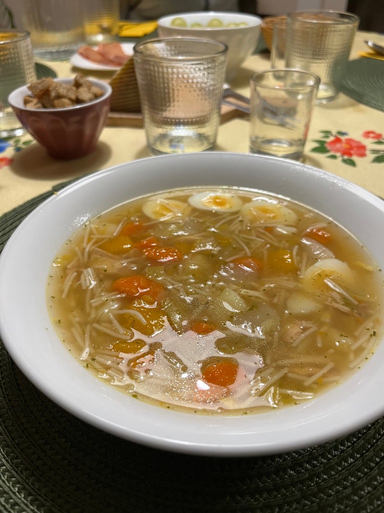 So the most mouthwatering dishes continue to flow from ‘Javier’s kitchen’ like manna from heaven. Today’s dinner was another version of the chicken stew puchero that we have been eagerly slurping all week. It is just the most comforting and healing food I can be eating right now – good for the stomach and good for the soul.