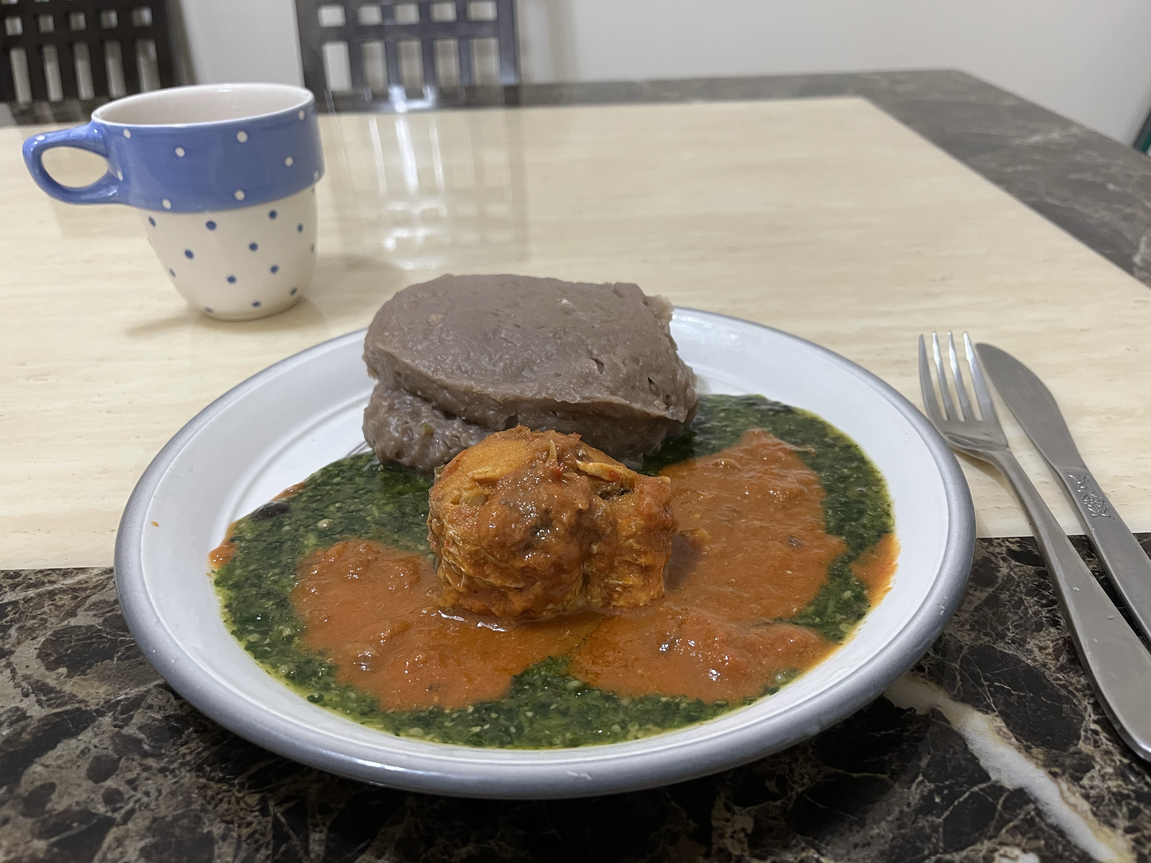 The first Saturday of the year I spent it at my mother’s house, eating ‘proper’ food. A small portion of amala with ewedo soup and fish. The amala was smooth and relatively sweet in taste.