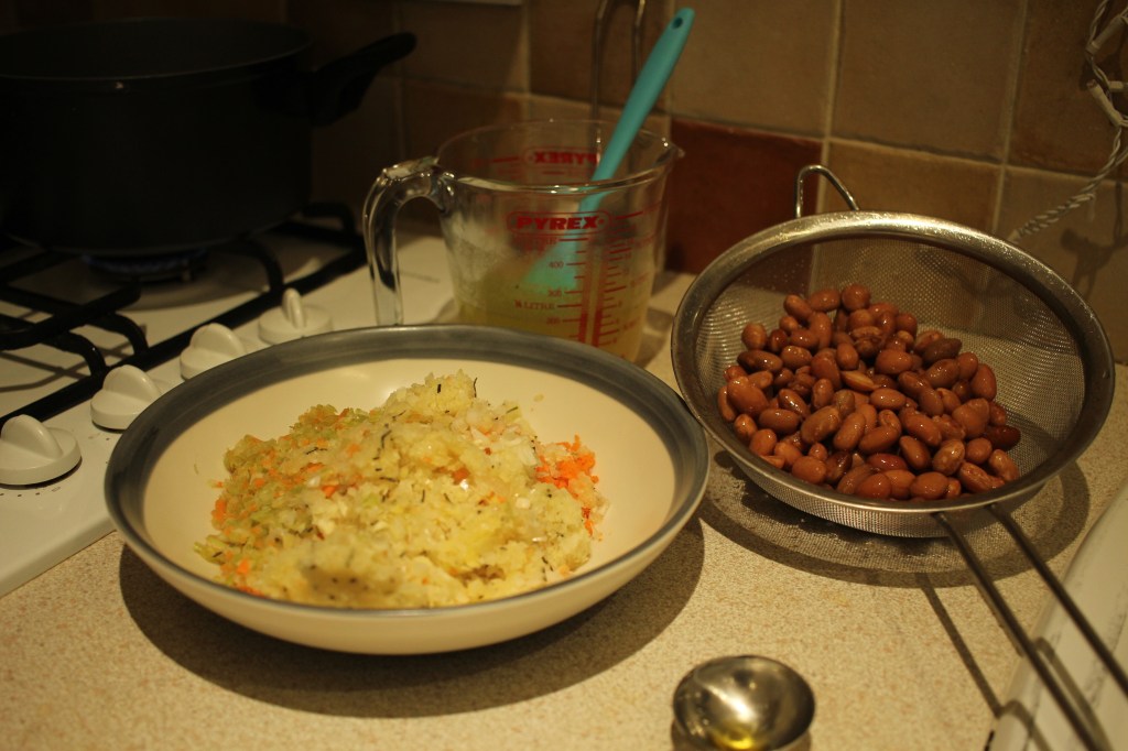 I also cheated a bit – I didn’t dice, grate or peel any of the vegetables in the way instructed by the recipe, I couldn’t be bothered. I put them all in my new mini-food processor. Right now I seem to be channelling 1950s housewife energy- acquiring kitchen gadgets to make my cooking life easier.