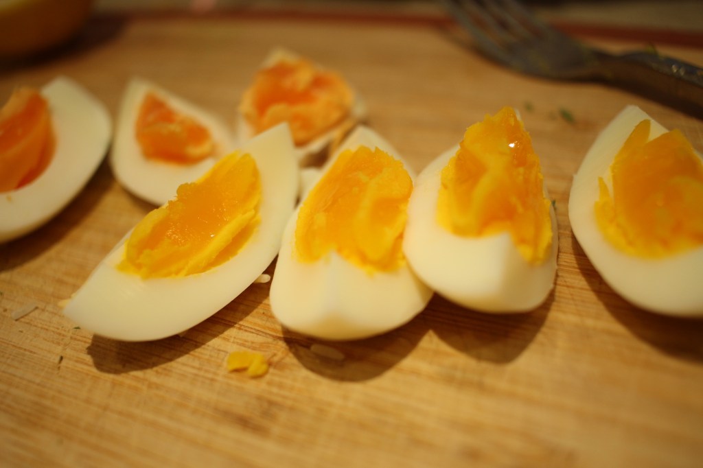 Saturday afternoon, after a lie-in and a shower, I made my way down to the kitchen, listened to my latest audiobook (Jojo Moyes – Somebody Else’s Shoes 👠) and put together this dish, which turned out very nice. Smooth, creamy, a little kick of pepper to liven things up, and luscious chunks of fish and egg.