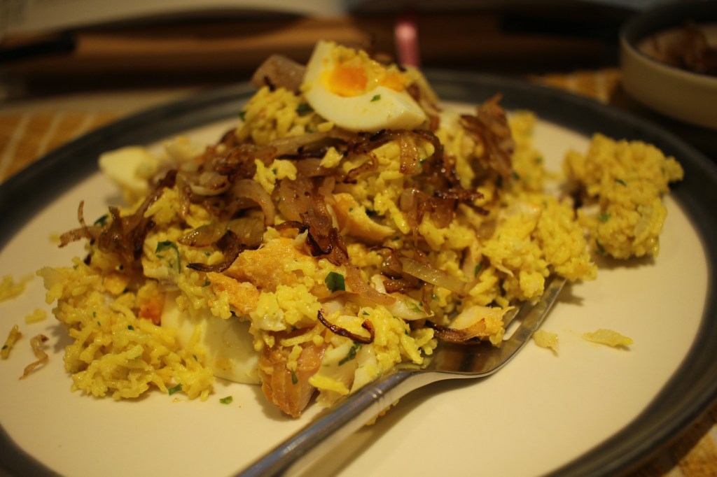 On Friday night, while doing some shopping for my mother at Tesco, I decided I’d like to buy some diced lamb to make a curry over the weekend. Alas, I could not see or find any evidence of such lamb available neither in the fresh meat or frozen food section. I was a bit surprised and disappointed but wondered if it I was just not being attentive enough or perhaps the universe was telling me that I needed to eat more less meat. And more fish…because I ended up buying three bags of frozen fish – haddock, cod and basa fillets. Then having bought some wildly overpriced eggs, I decided that I would make kedgeree over the weekend.