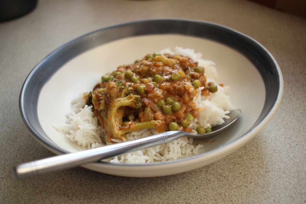 And what was I preparing in my sun filled kitchen this Sunday? Another curry! I follow another food blogger and catching up on her posts on Saturday evening I found a recipe that I thought I’d like to try /adapt. I was curious about adding peanut butter to a curry, I might have done it before years ago but not for a long time now. So I luxuriously made and ate the curry in a state of peace and tranquillity.