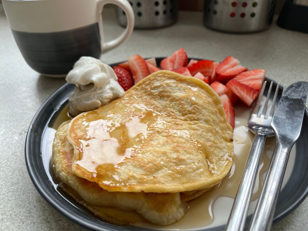 Wednesday was miserable and grey but I made myself some morning cheer by whipping up a batch of pancakes. I have an old favourite recipe by Delia Smith that I go back to time and time again. It’s a fairly quick and painless recipe, very easy to put together.
