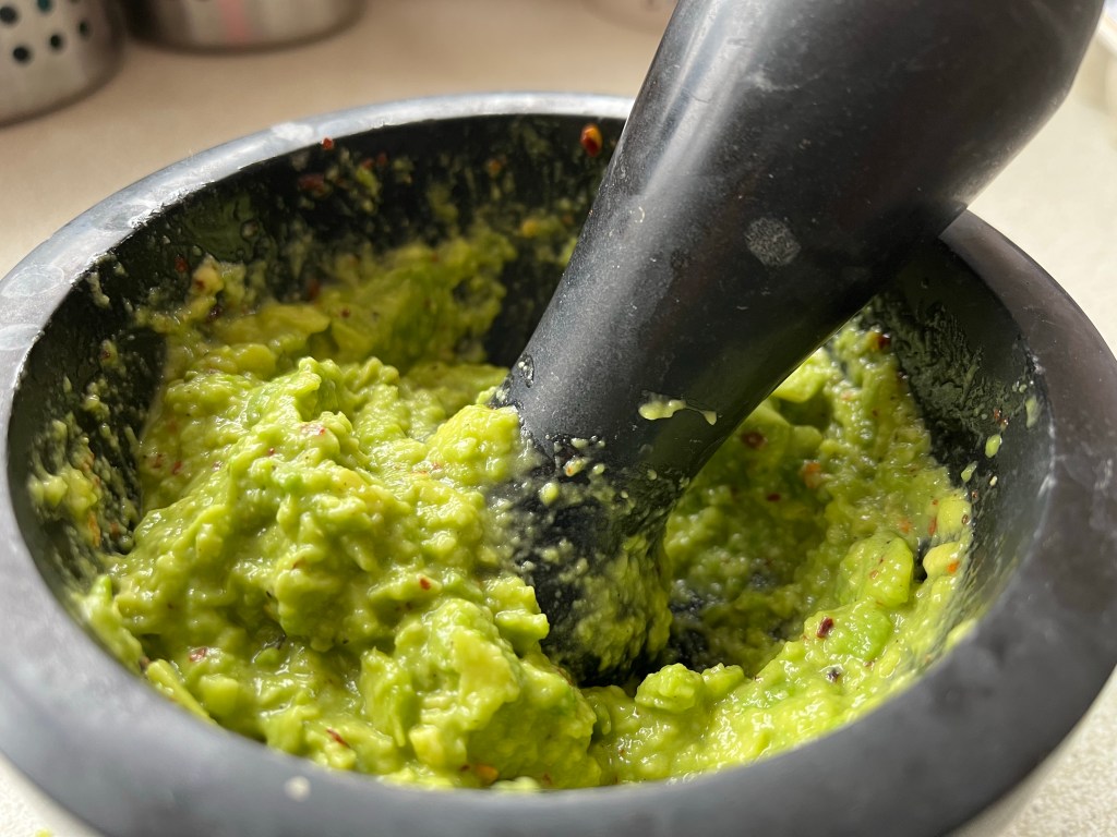 I got home, wiped down the kitchen counters, did some washing up, loaded and started the dishwasher and thought about what I wanted to eat for brunch. There was an avocado in the fridge – waiting for me. So I thought I might just mush up the avocado with salt, pepper, olive oil and arbo chilli flakes.