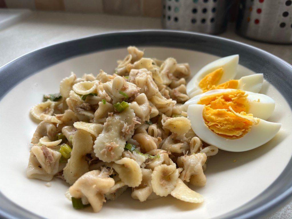 Then for lunch I reinvorgated a pasta and tuna dish I had made at the weekend. I livened it up with a chopped boiled egg.