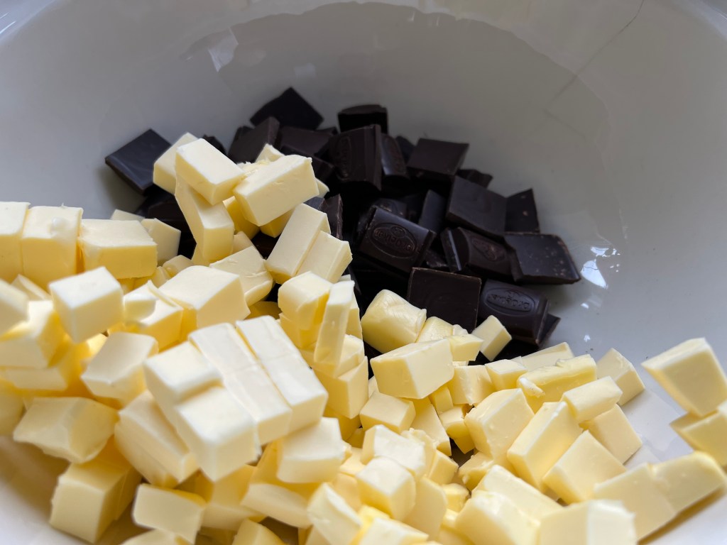 The whole process was calming neatly chopping up the butter and chocolate pieces…