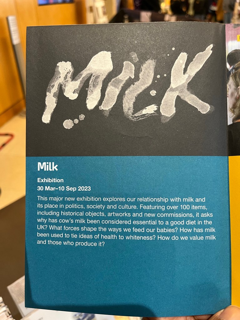 Afterwards I walked down to the Wellcome institute. I had wanted to go to the ‘Objects in Stereo’ exhibition. I eventually did but not before I was distracted my the ‘Milk’ exhibition. OMG – what an interesting display of science, history, culture through the story of milk.