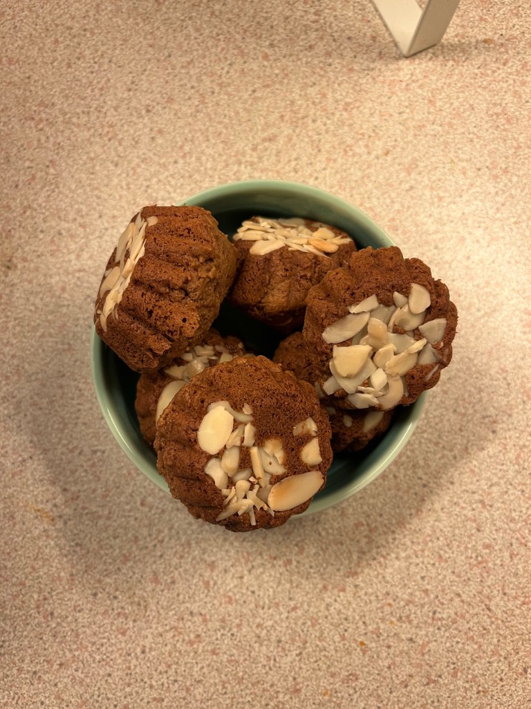 - Leave to cool, turn out so the almond flakes on top and finish cooling on a wire rack.