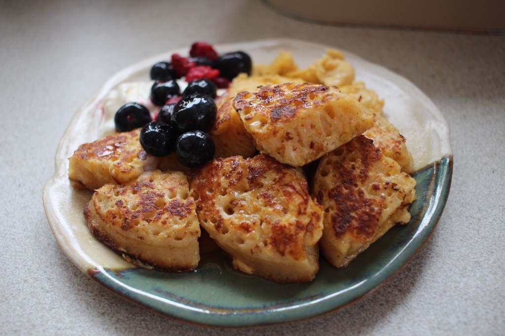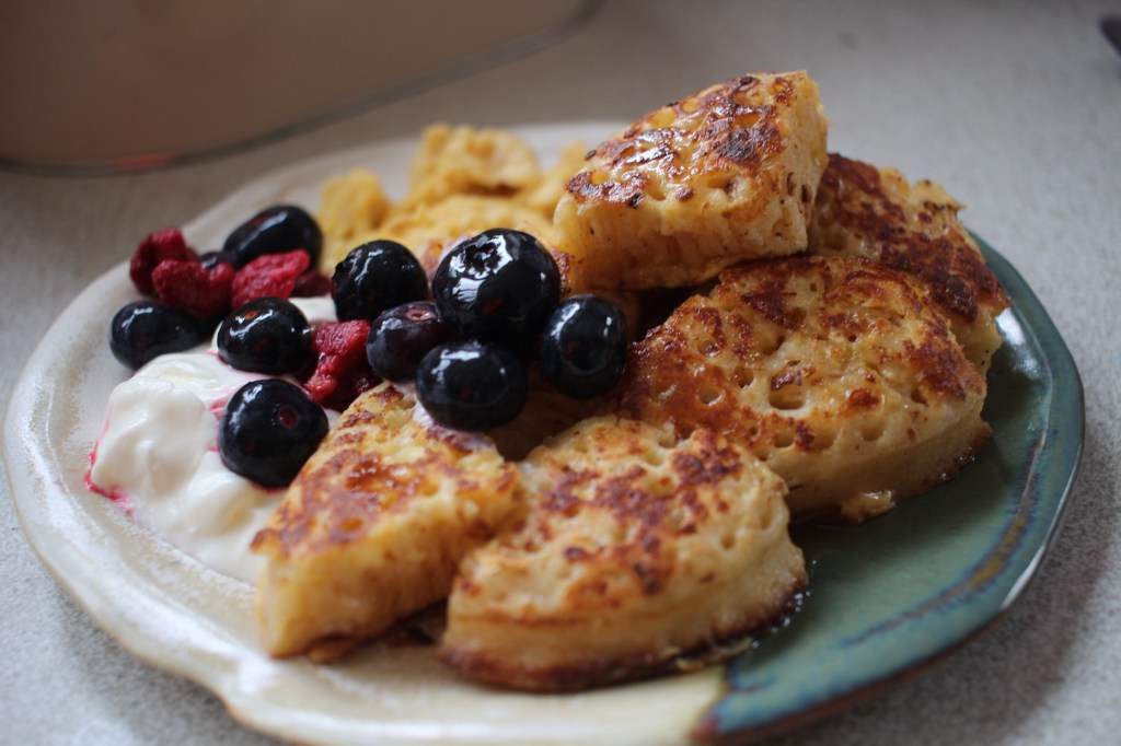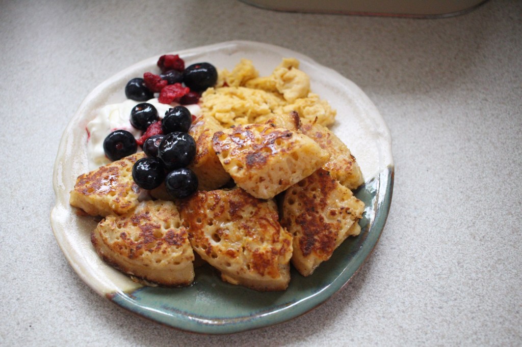 Comforting French Toast Crumpets with Greek Yogurt and Berries