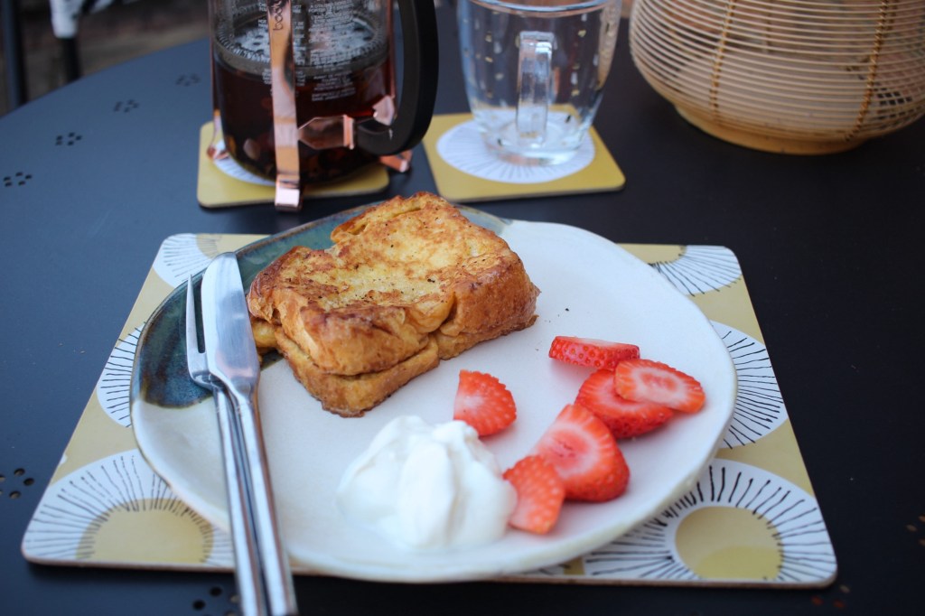 I went back to Sabrina Ghayour’s version of French toast. It was not disappointing and made for a peaceful breakfast out in the garden. It was so warm and sunny, it was not difficult to feel at peace.
