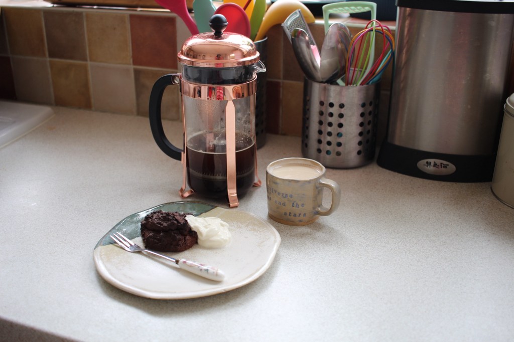 Today is Sunday. I afforded myself a lie-in, I tied the kitchen a little bit and ate a very small breakfast. Tahini, almond and orange brownies, made yesterday (post coming soon) and eaten with some Greek yoghurt and coffee. Coffee has not been part of my ‘relaxed breakfast’ conversation for a while. It was upsetting my stomach and making me feel quite anxious when I was drinking it in the car on the days when I was the most tired and stressed. So I could see that it was not healthy for me in those situations. However, today I thought that a small cup with some skimmed milk would not be a bad thing. I was correct, it went down very well.